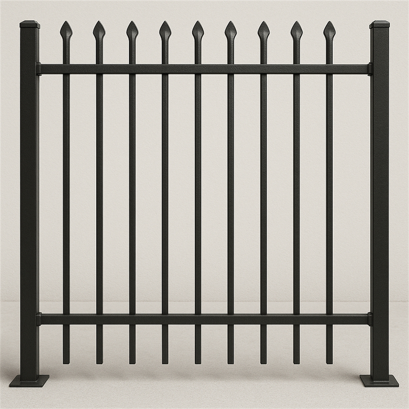 POLYMETAL black garrison fencing is a welded steel spear-top panel system engineered for clean architectural lines, repeatable installation, and consistent batch-to-batch geometry.