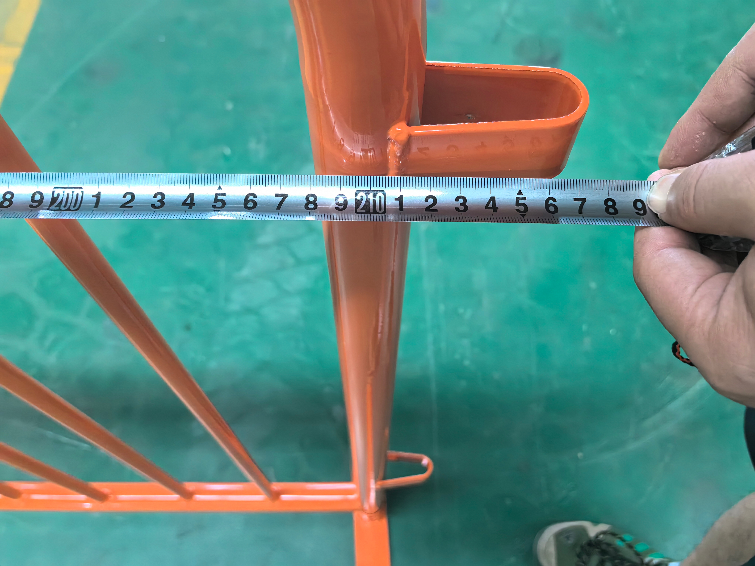 Panels and feet are then hot-dip galvanised or pre-galvanised and powder coated, with coating thickness checked at key points to ensure full coverage, particularly at welds and corners. Bridge and flat feet are formed and drilled to accept frame ends and locking pins or clamps. Throughout production, dimensional checks, weld inspections and coating tests are carried out following an internal guide and checklist so that every batch of POLYMETAL crowd control fencing panels meets the same structural and visual standard.