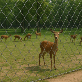 Deer enclosure mesh is fabricated from stainless steel wire cables that are woven or pressed into diamond-shaped openings and fixed to posts or frames to form a resilient, three-dimensional fence surface.With its flexible and solid structure,stainelss steel wire rope mesh deer fencing is very durable and highly resistant to impact, bending and animal contact, making it ideal for active and agile deer species.There are no sharps on the wire rope mesh surface, so when deer rub or touch the fence, their skin and fur are not harmed, and the smooth structure also reduces the risk of injury for keepers and visitors.Thanks to stainless steel materials and stable cable construction, the rope mesh fencing offers more than three decades of service life to help maintain a safe, low-maintenance zoo and wildlife environment.
