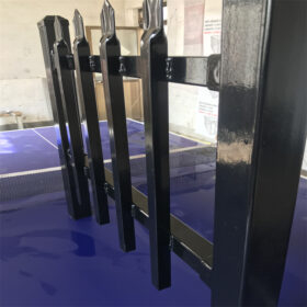 The top and mid rails are fabricated from square hollow section tube such as 40×40, 45×45 or 50×50 mm, selected according to fence height and wind exposure. Uprights are typically 16×16, 25×25 or 30×30 mm tubular steel with 1.2–1.6 mm wall thickness, welded to the rails in a regular pattern. Panel widths are commonly 2400 or 2450 mm, balancing efficient installation with structural performance. Posts are available in sizes like 60×60, 65×65, 75×75, 80×80 and 100×100 mm, and are cut in lengths from 2400 to 3900 mm so that installers can achieve the correct embedment depth and finished fence height in different soil conditions.