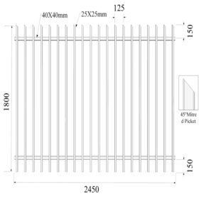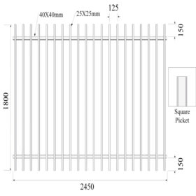 | 1800mm | 2450mm | 45×45mm | 2.50mm | 30×30mm | 1.20mm | 100mm | 18 pcs (100mm) | 75×75mm | 2.50mm | 2400mm |