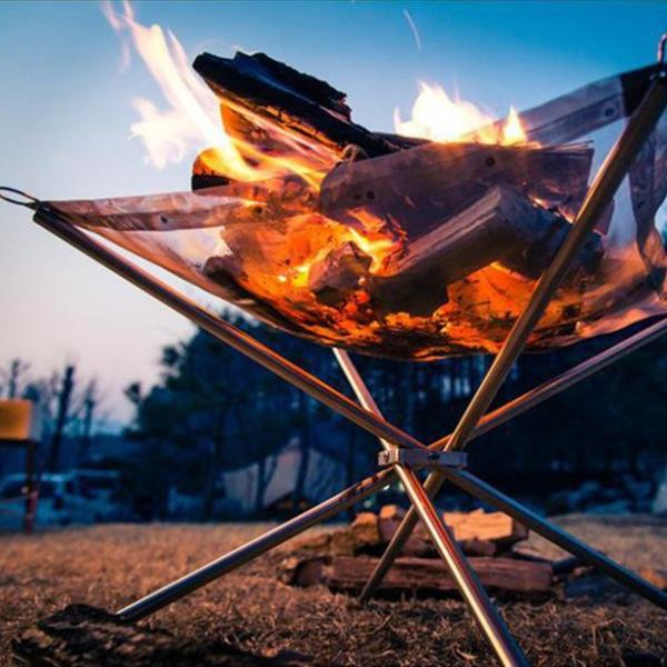 A portable wire mesh fire pit (also marketed as a foldable fire pit, fire platform, or lightweight fire rack) is a stainless steel mesh surface supported by tube stands that creates a stable, elevated burn platform for firewood or charcoal in outdoor use. The value is portability: it packs into an Oxford bag, sets up quickly, and provides a controlled burn surface for camping, picnics, backyard warming, and BBQ scenarios where a compact system is preferred.