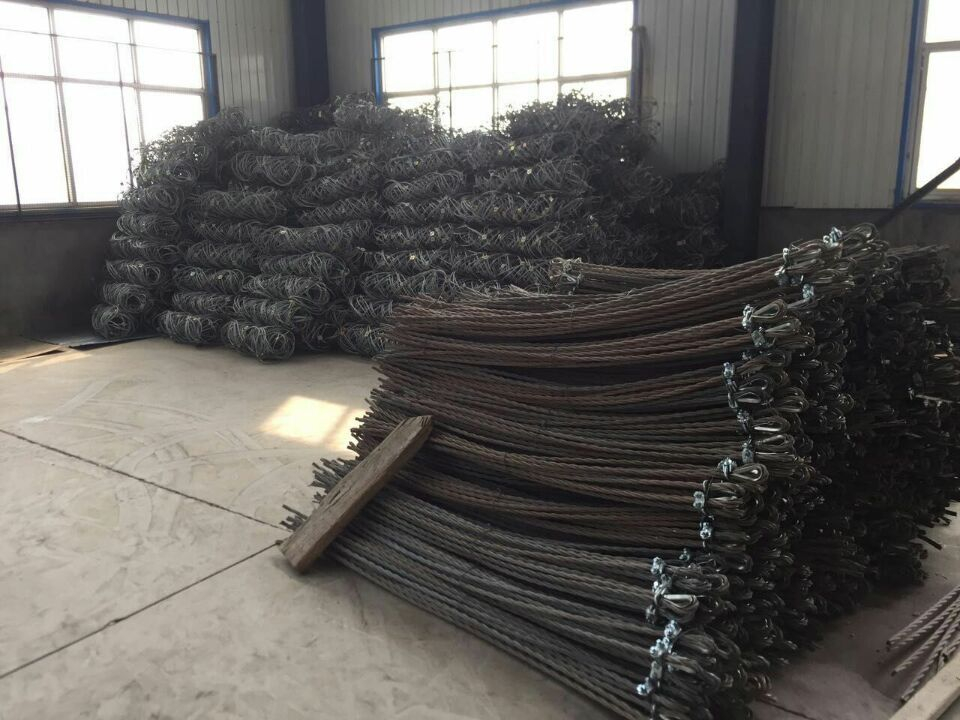 Made of steel wire rope, the wire rope anchor fastens the galvanized wire rope net and chain link mesh securely to the rock face. Compared with concrete anchors, wire rope anchors have higher tensile strength and better flexibility. - Supporting rope.