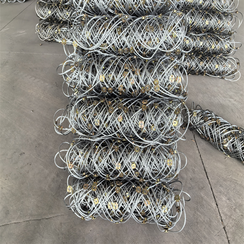 Galvanized wire rope net is one of the most commonly used rockfall barrier systems. It is manufactured from hot-dip galvanized steel wire rope. The intersecting wire ropes are clamped and fixed with special clips, which gives the mesh much higher tensile strength than ordinary steel wire meshes.Galvanized wire rope net can be used on its own or in combination with a chain link fence or hexagonal wire mesh. When it is used alone, it is ideal for high and steep rock faces where the stones are large and the impact energy is very high. When it is combined with a chain link fence or hexagonal wire mesh, it is suitable for loose mountains or slopes with many small stones. In this case, the inner chain link or hexagonal mesh stops the small stones, while the outer galvanized wire rope net absorbs and transfers the main impact load.