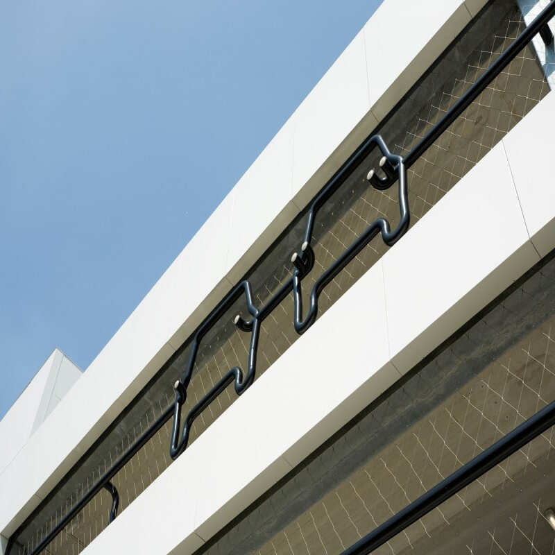 Because the cables are flexible and the mesh behaves like a tensioned membrane, panels can span long distances, follow curves and wrap around irregular shapes.