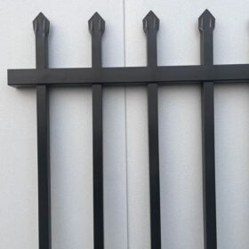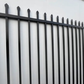 Depending on project needs, the steel can be pre-galvanized tube fabrication or full hot dip galvanizing after welding, then finished in black powder coated Interpon brand for a strong, even appearance. Learn more about compatible gate options and matching layouts in our garrison fencing gates guide.