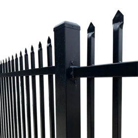 Common post options include 60×60, 65×65, 75×75, 80×80, and 100×100 with wall thickness options such as 1.6 mm, 2.0 mm, and 2.5 mm to match the Steel Tubular Garrison Security Fence height and site conditions.
