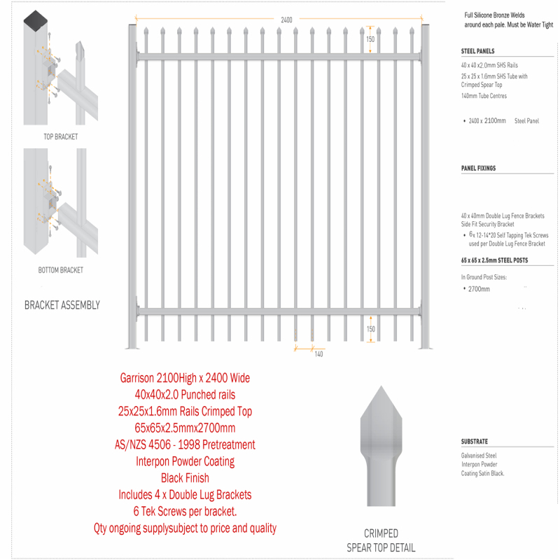 Specifications Tubular Steel Picket Fences