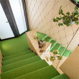 For railing and stairway infill, x tend metal mesh provides safety with a clean, nearly invisible appearance, suitable for homes, schools, museums, and public buildings. In safety applications such as viewing platforms, stadiums, and multi-level interiors, x tend metal mesh offers reliable containment while blending into the architectural language. For greening, it acts as a climbing aid for plants and enables elegant green façades that can cover full buildings or selective zones. In sports facilities, it works as discreet fencing or ceiling protection with low maintenance needs. For zoo enclosures, x tend metal mesh helps designers create open, natural-looking habitats that preserve sightlines and reduce the “cage” feeling.